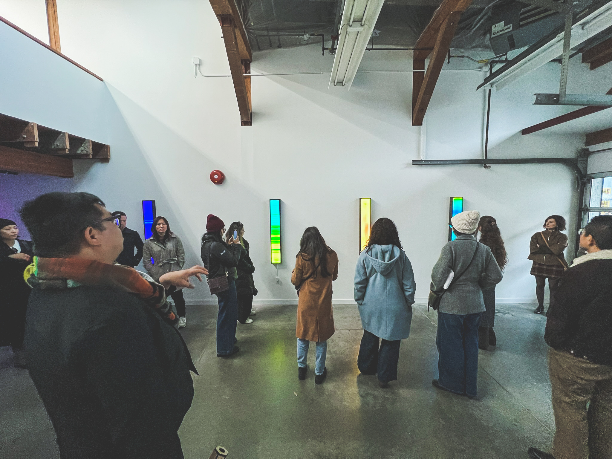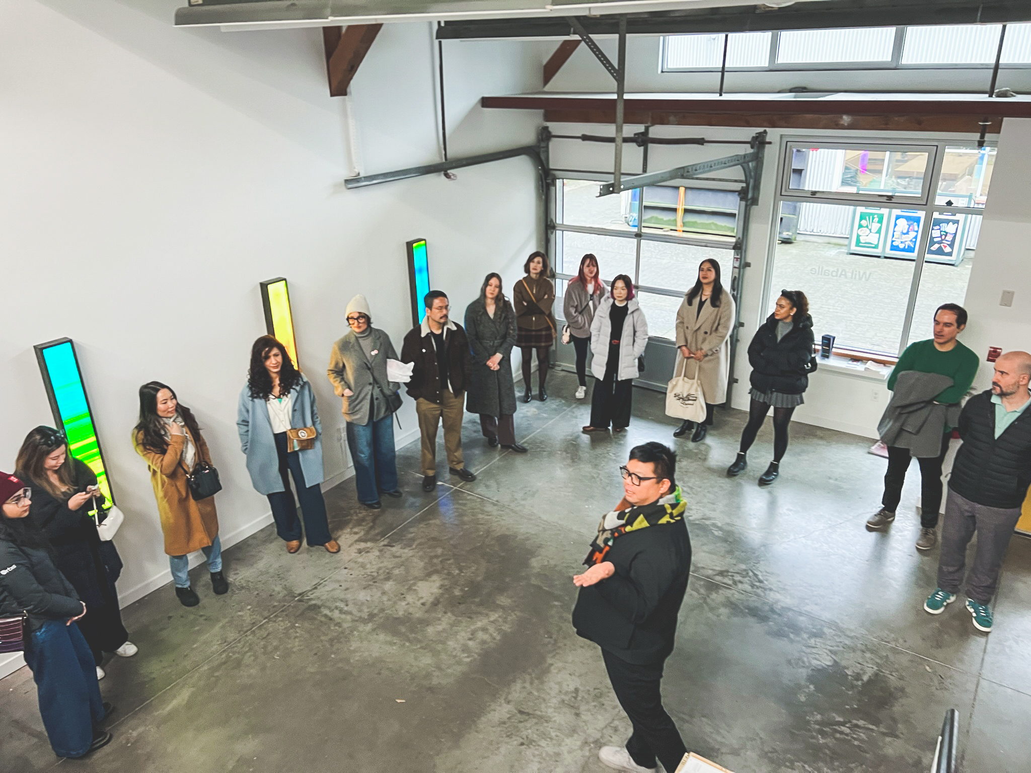 Our final art stop brought us to Wil Aballe — a space that consistently invites reflection and offers rare encounters with emerging and mid-career artists connected to Vancouver. This time, we experienced Charles Campbell’s Breath Portraits: luminous light boxes that propose an entirely different approach to portraiture.