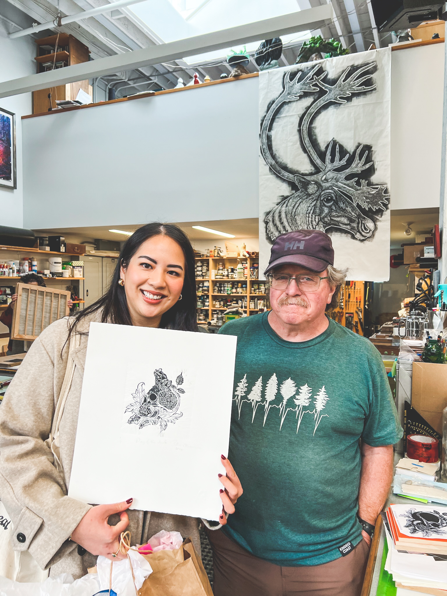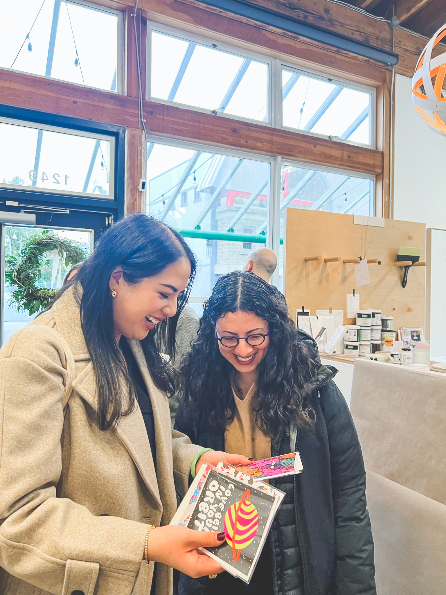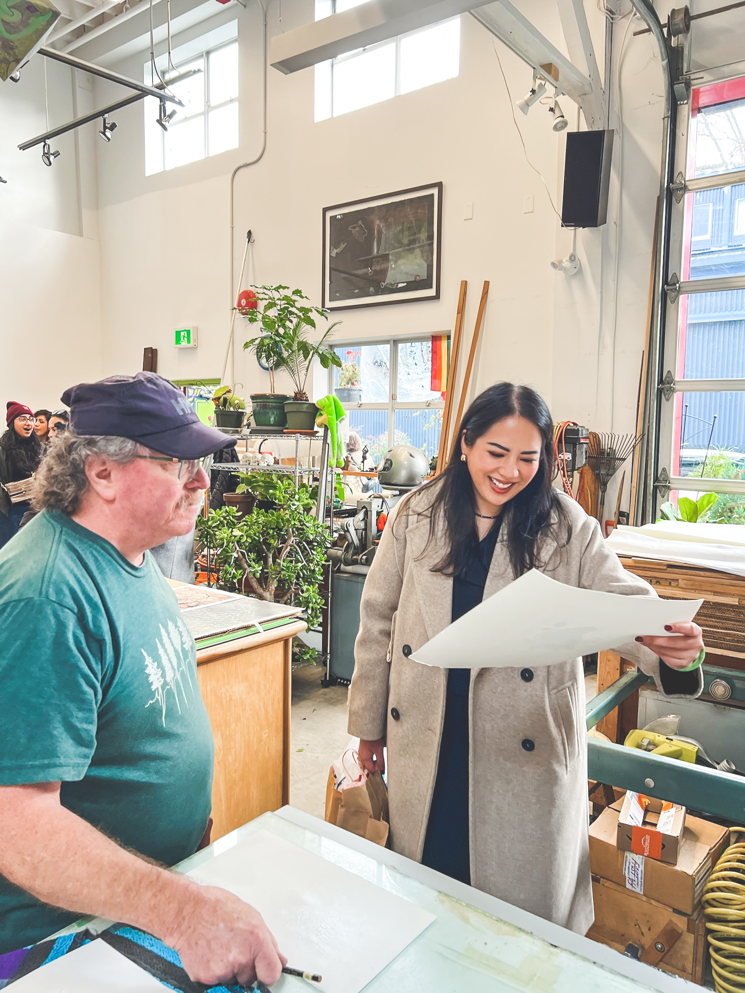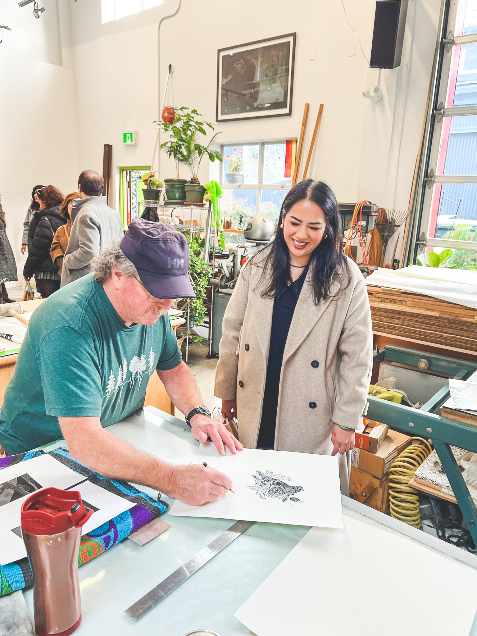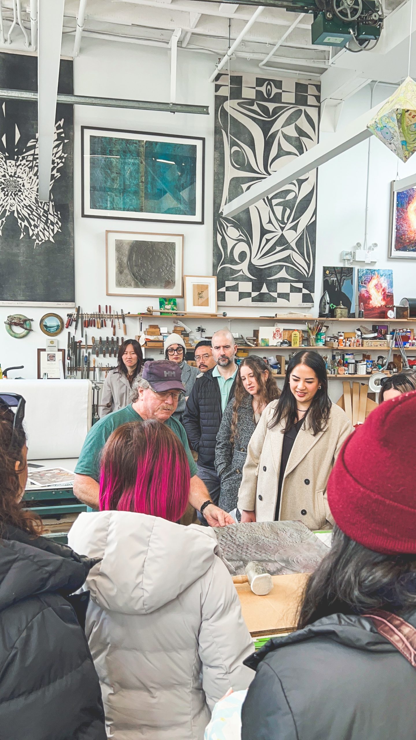 From there, we visited Banquet Atelier & Workshop, a Vancouver-based studio whose thoughtfully designed, screen-printed works can be found in numerous stores. Seeing where everything is conceived, printed, and produced — all here in Canada — added richness to the objects themselves. The visit also included unexpected access to neighboring artists’ studios, offering a behind-the-scenes look into the creative ecosystem of Granville Island.